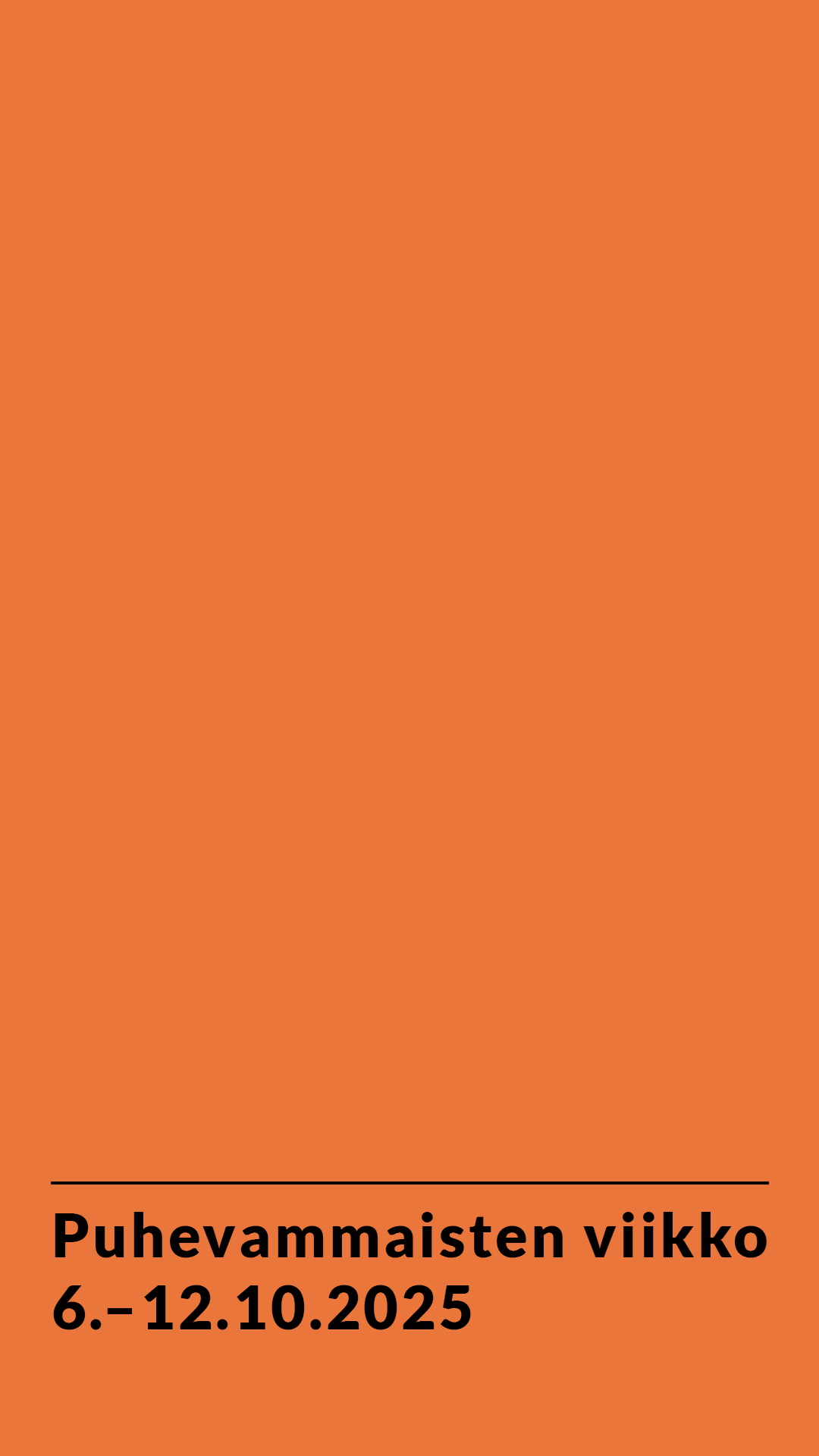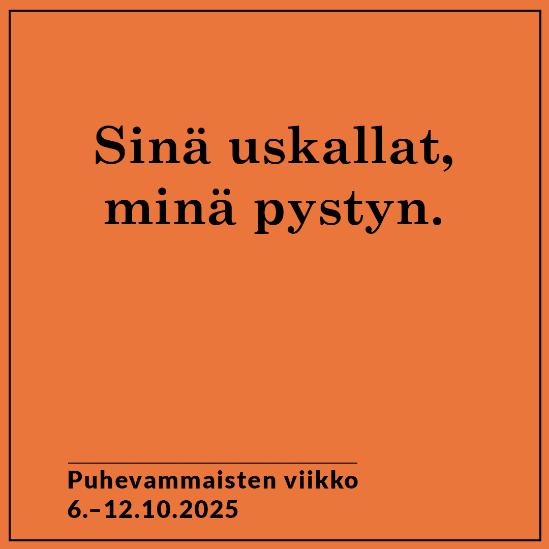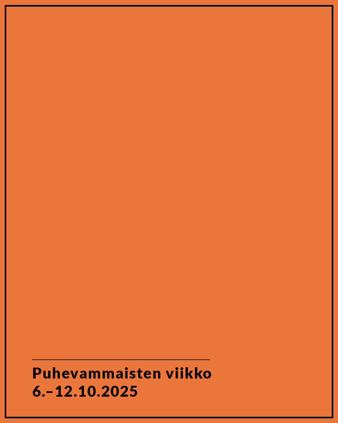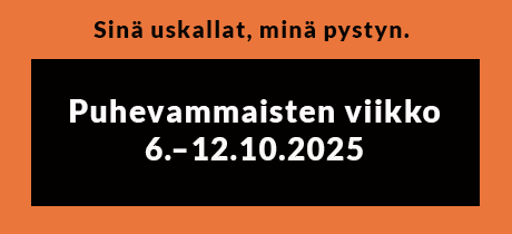 Puhevammaisten viikkoa vietetään 6.–12.10.2025. Uusia tapahtumatietoja ja materiaaleja päivitetään näille verkkosivuille syksyllä 2025. Seuraa sitä ennen tapahtumaviikon viestintää myös Facebookissa.
